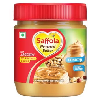 Saffola Peanut Butter with Jaggery, Creamy 350 gm | High Protein Peanut Butter | No Refined Sugar is available on Amazon at best discounted online price. Original price of this product is ₹ 175. You can buy this product at discounted rate ₹ 98.
