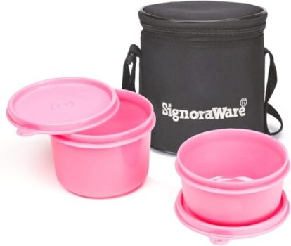 Signoraware Executive Small Lunch Box with Bag, 15cm, Pink is available on Amazon at best discounted online price. Original price of this product is ₹ 395. You can buy this product at discounted rate ₹ 216.76.